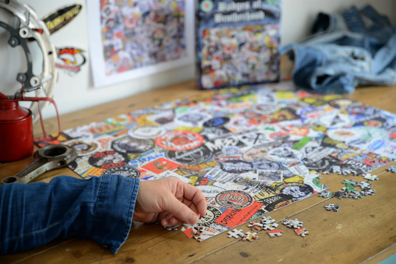Ride into brotherhood with this 1000 piece jigsaw puzzle featuring motorbikes and the brotherhood bond they represent. Unleash your inner biker and piece together this puzzle for hours of fun (and maybe a little friendly competition). Rev up your puzzle skills and show off your love for motors with Badges of Brotherhood.