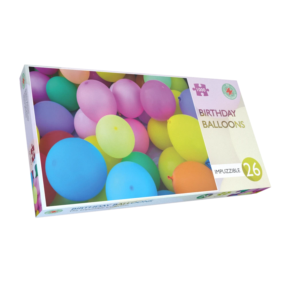 Birthday Balloons is an Impuzzible – an almost impossible 1000-piece jigsaw puzzle.