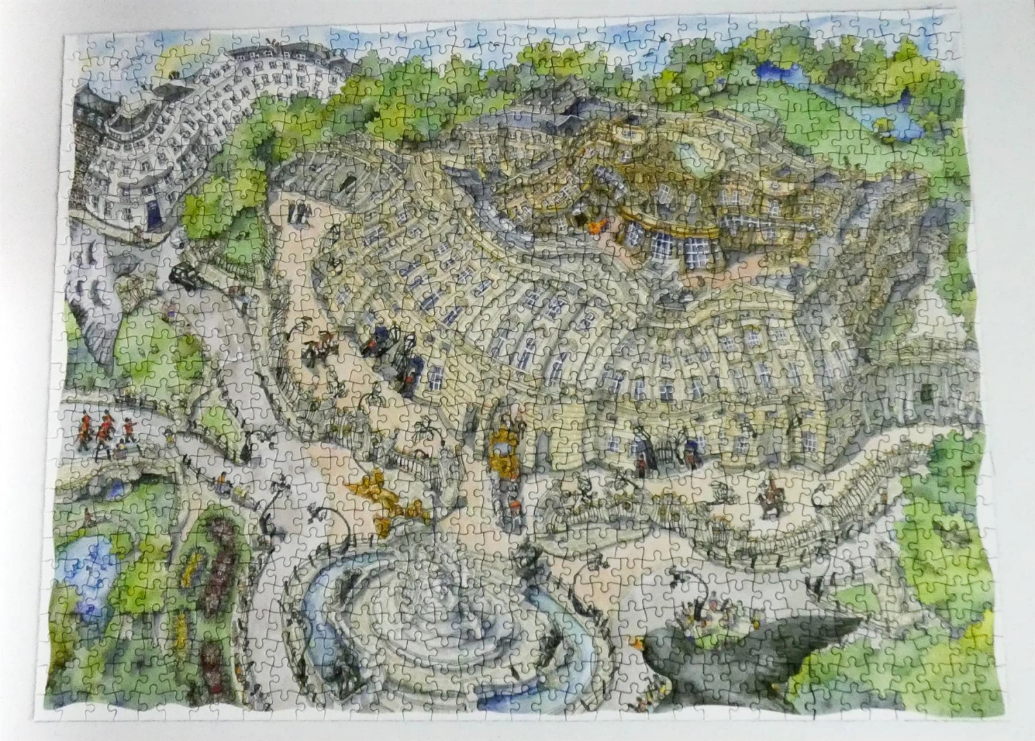 Enjoy a birds eye view of Buckingham palace and the surrounding area in this beautiful jigsaw puzzle. In this stunning puzzle of London and Buckingham palace, we can see all the quintessential parts of this royal building. From the beefeaters standing guard and marching down the road, to the horse and carriage leaving the gates of the palace, you’ll love spotting all the lovely details in this beautiful royal scene, including The Queen Victoria Memorial and St James’ park.Â