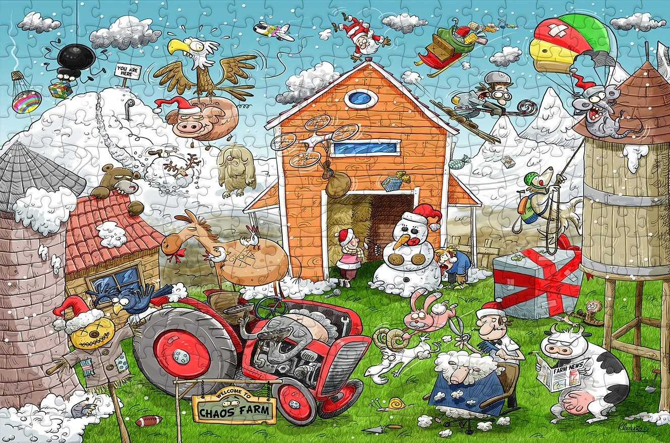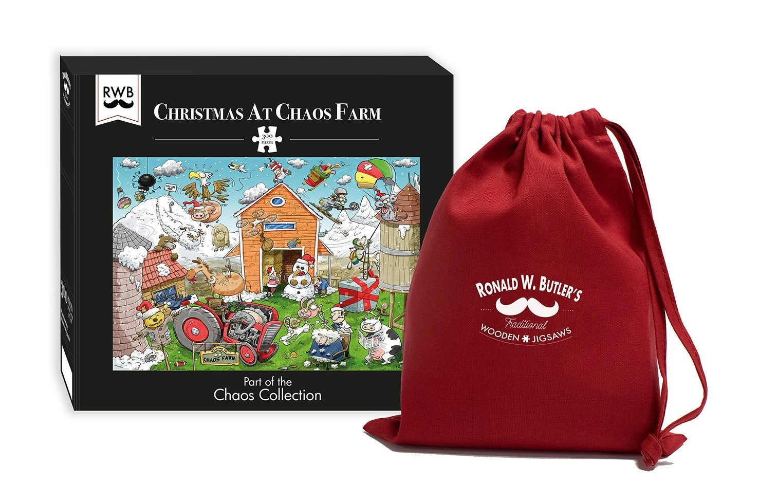 Christmas at Chaos Farm is a funny and festive 300 Piece Wooden Jigsaw Puzzle.