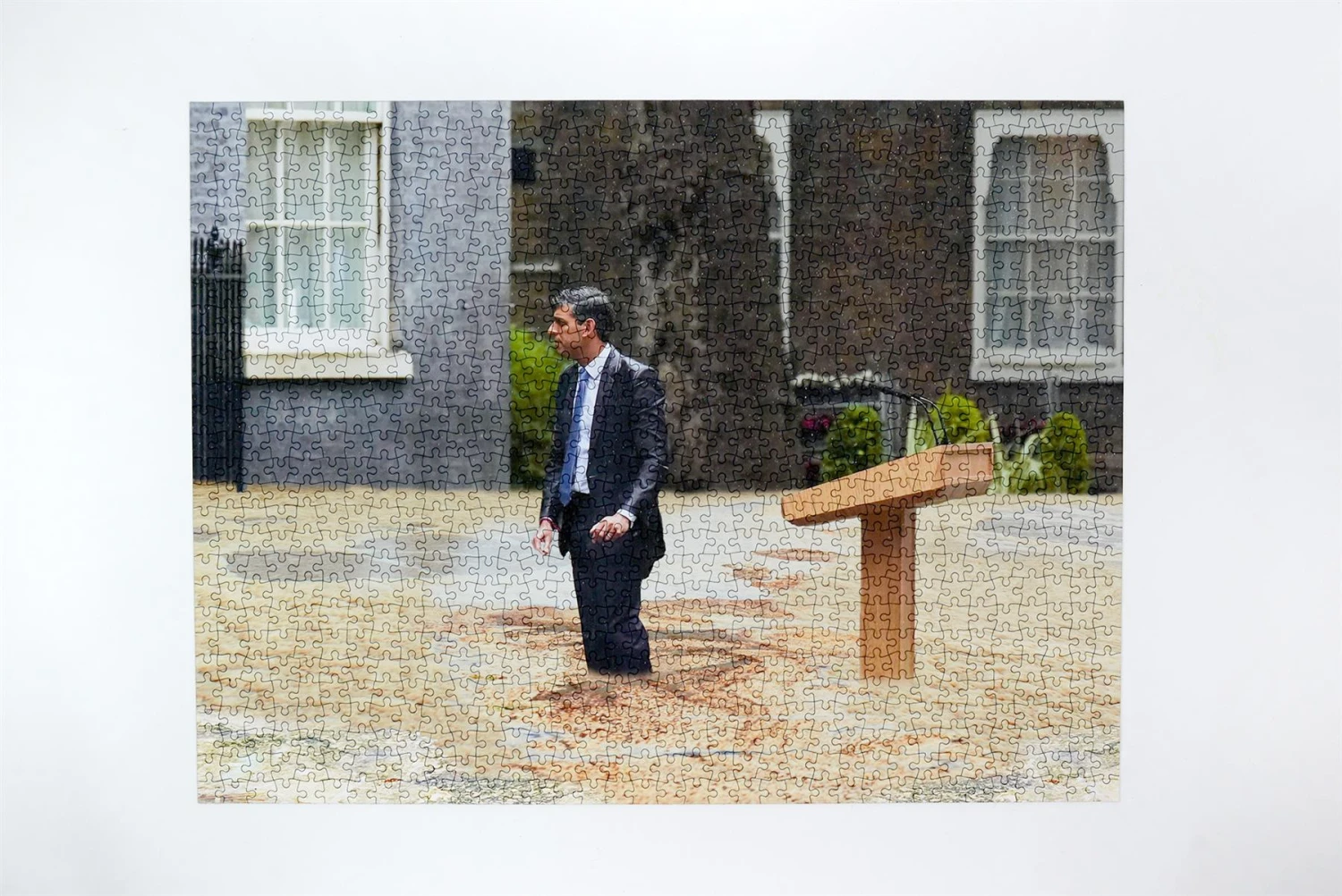 Rishi Sunak at the centre stage of his soggy career, wading around outside No.10.