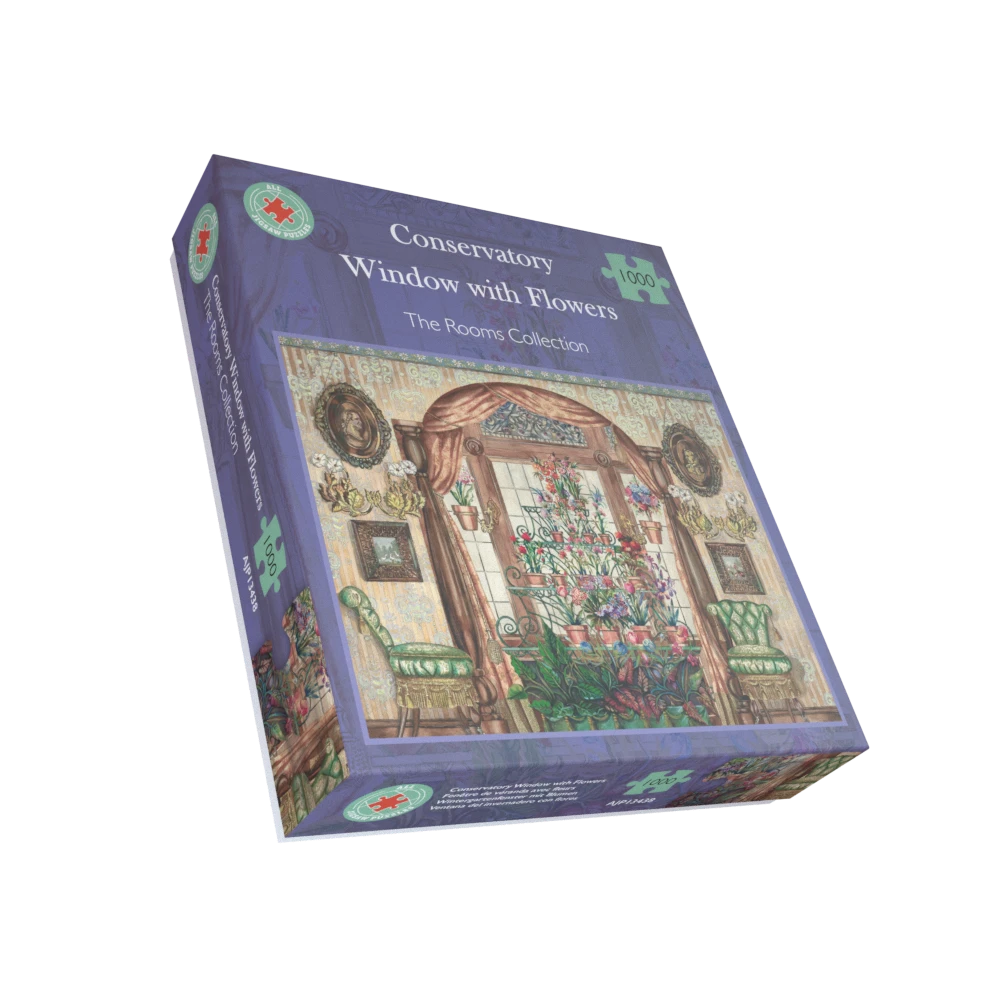 Experience the beauty of nature with our Conservatory Window with flowers 1000 Piece Jigsaw Puzzle!