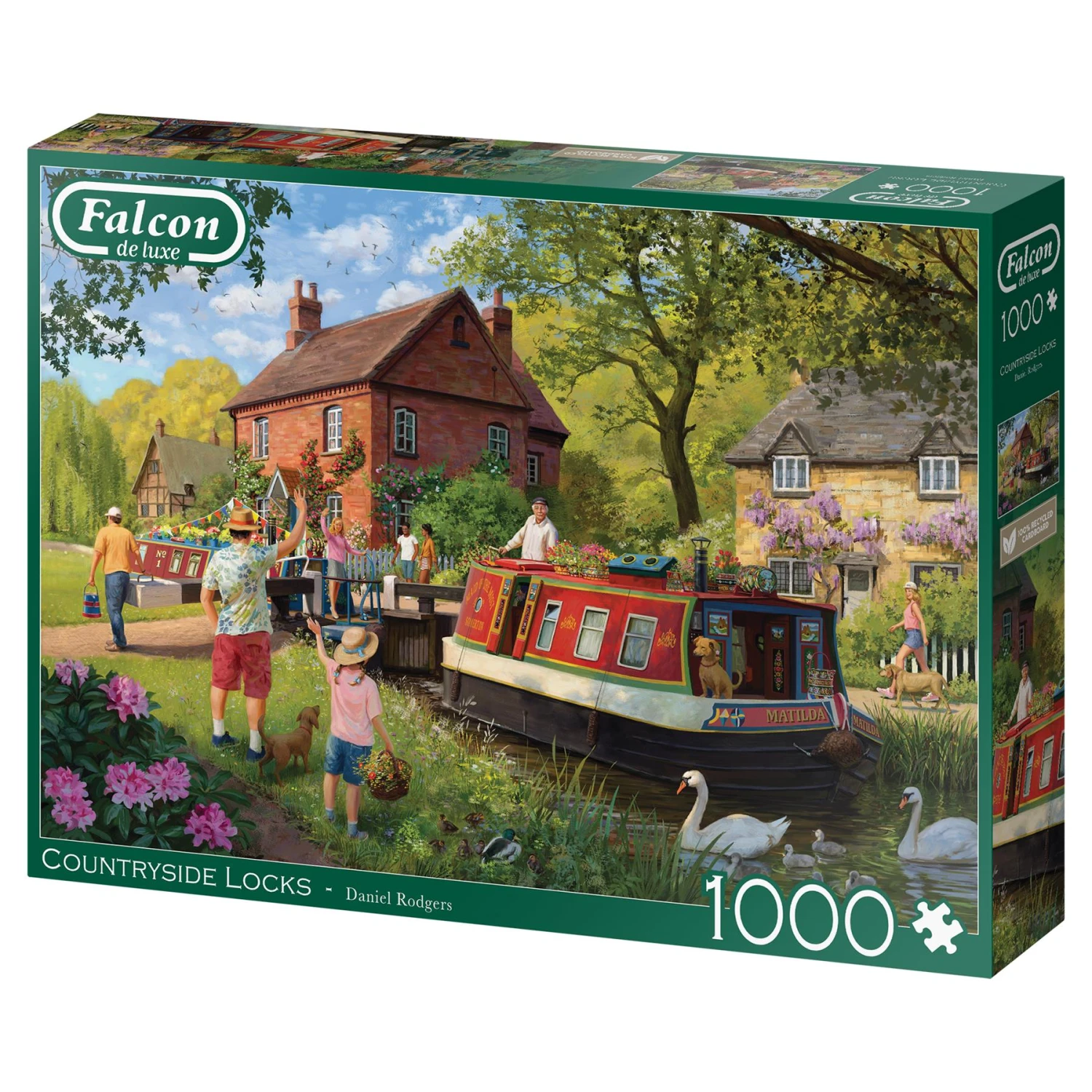 Piece together a beautiful countryside scene with this 1000 piece jigsaw puzzle from Falcon de luxe! Watch the barge glide along the water as people wave from the banks and swans swim by. Let the peaceful scenery inspire you as you solve this puzzle.