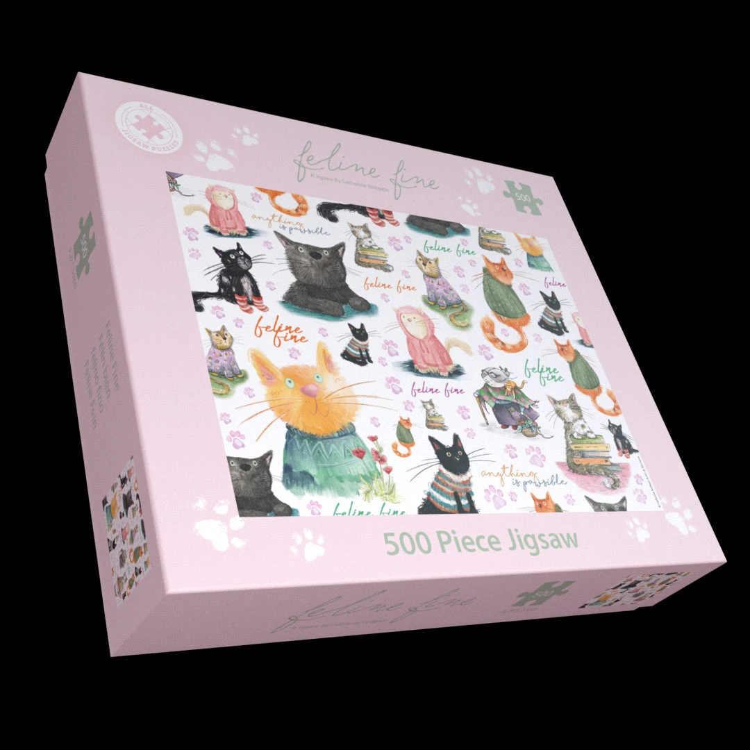 Get ready to purr-fect your puzzling skills with the Feline Fine 500 Piece Jigsaw Puzzle! This adorable jigsaw features quirky cats in charming jumpers, perfect for any cat lover. The vibrant artwork by Catherine Redgate will have you feline fine as you piece together this delightful puzzle.Â