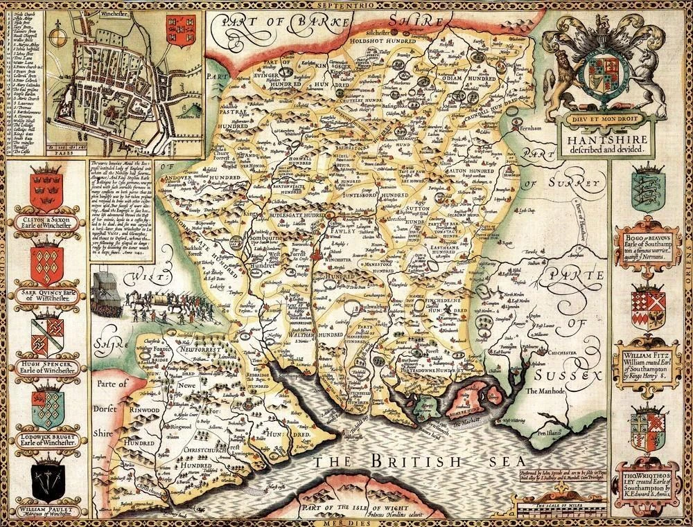 This is a superb jigsaw puzzle featuring the county of Hampshire in approximately 1610.