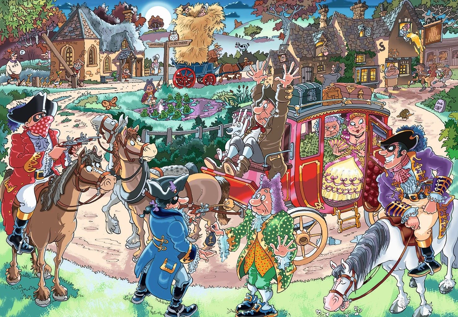 Highway Hold-Up!‚ is the title of this brilliantly funny Wasgij Destiny 21, 1,000-piece jigsaw puzzle. Woah‚there’s been a hold-up and they‚ve been forced to stop aside. But how different would today’s world be if you (unfortunately) get pulled over? Try to imagine what this scene would look like in modern day, the vehicles would have changed, but what else might of? This is the scene you will have to puzzle.