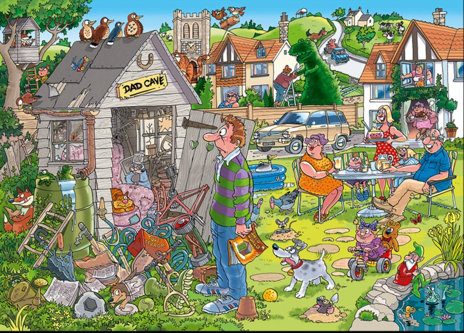 The old garden shed’s days are numbered. Dad’s little hideaway is so cluttered he hasn’t sat in there for years. Packed with so much gear, it’s bursting at the seams and every cat, mouse, frog and hedgehog has taken up residence. No longer a place to escape to, it has just become a dumping ground. It’s time for an upgrade, but how will the new Dad Cave shape up? Will there still be room for bikes, bats and balls, or will Dad’s hobbies come first? This is the scene you will need to puzzle.