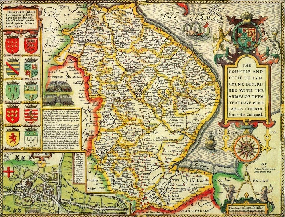 This is a superb jigsaw puzzle featuring the county of Lincolnshire in approximately 1610.