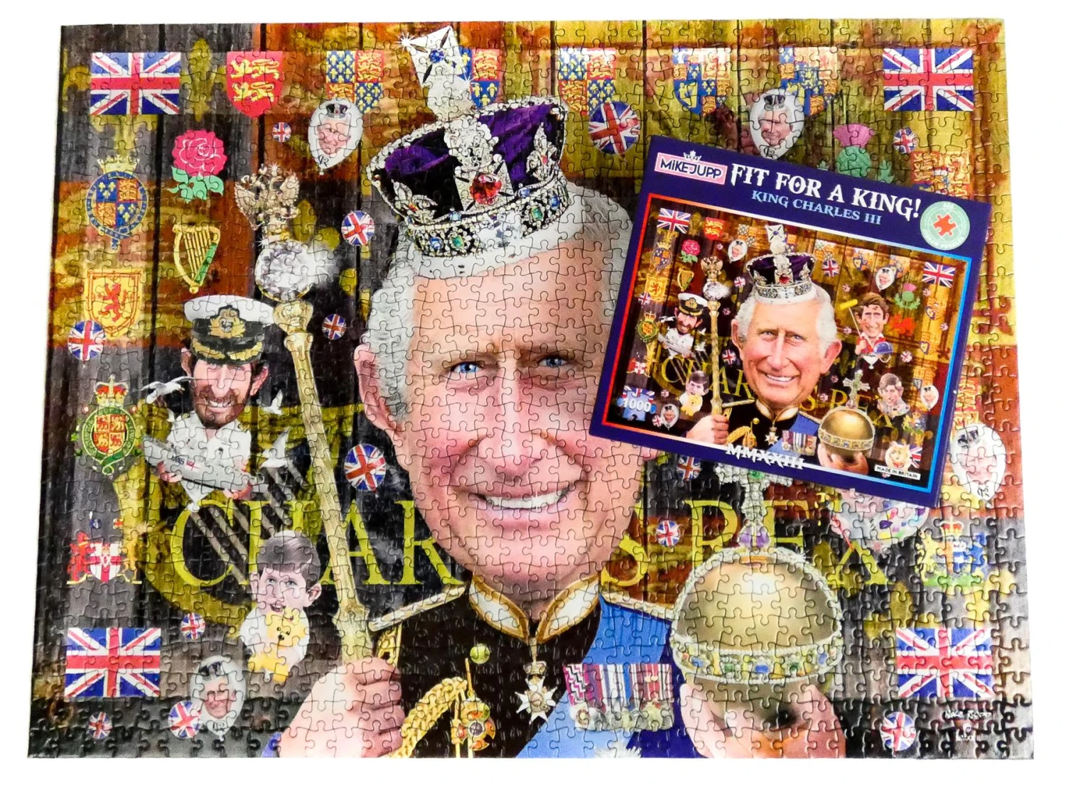 Mike has carefully created this charming caricature of King Charles in our latest coronation puzzle. This Collectors’ item is a ‘must have’ to celebrate the Coronation of King Charles.