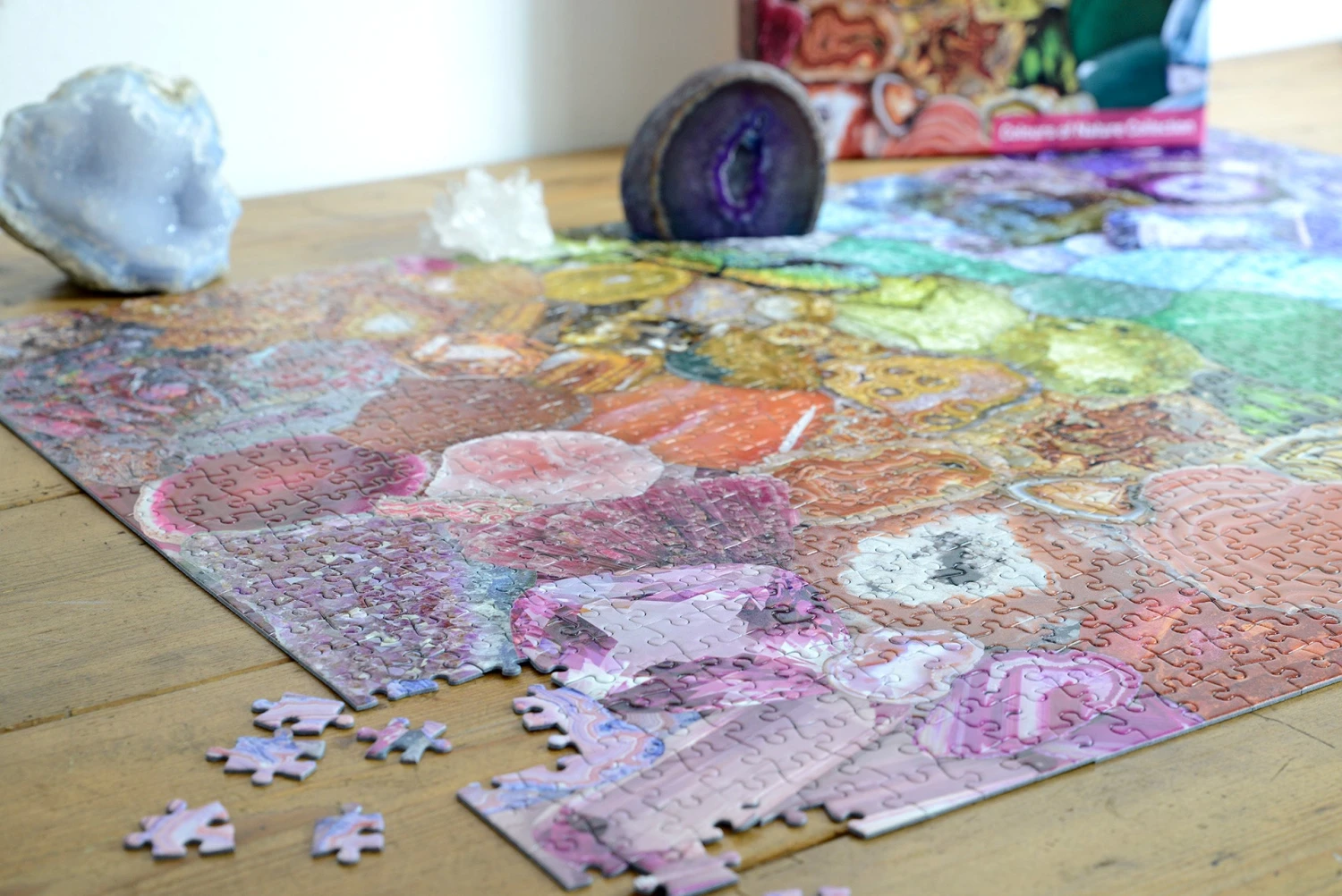 See all the colours of the rainbow come to life as you assemble stunning specimens of nature such as Turquoise, Rose quartz, agate, onyx and jasper, to name a few. Piece together some precious stones and watch the sparkle of light and hue shine through. Transform your table in to spectrum of nature with this mesmerising mineral jigsaw puzzle. A complete gem to puzzle!