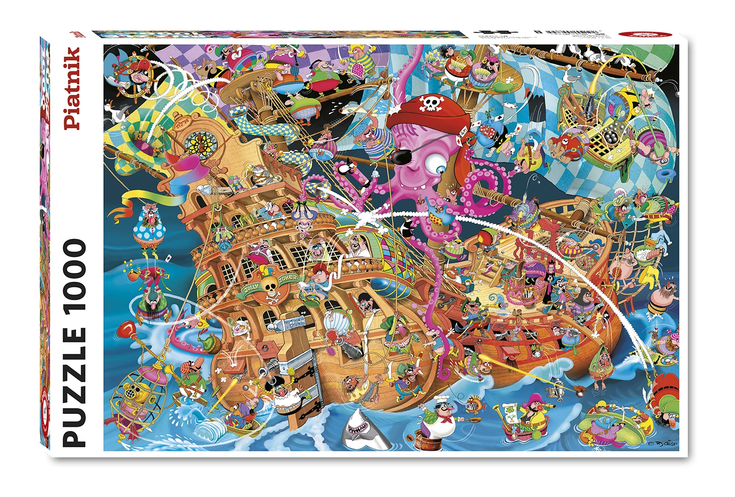 Bursting with vibrant colours and wacky details, this puzzle brings to life a hilariously chaotic pirate ship filled with quirky characters and mischievous antics. From the comical octopus captain to the daring pirate crew and their outrageous high-seas escapades, every piece adds a splash of fun to your puzzling journey. This lively masterpiece guarantees hours of laughter, challenge, and pure entertainment. Dive into the zany world of the Pink Pirate and piece together a treasure trove of nautical nonsense!