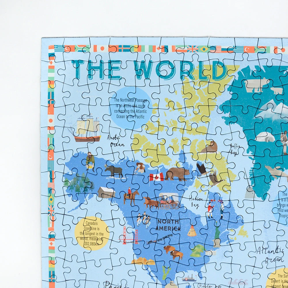 A bright and colourful illustration full of native animals and impressive landmarks; discover the world’s most important features as you piece together this exquisite map.