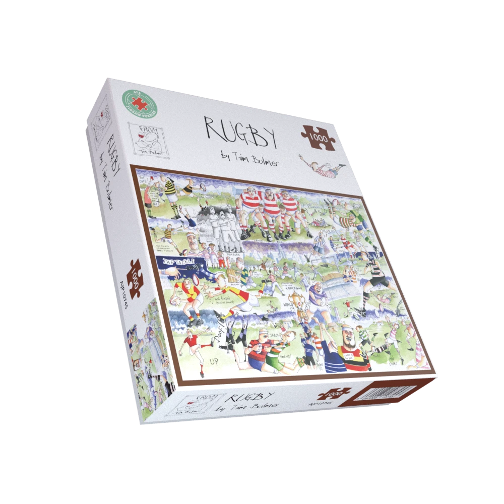 A fun illustration all about Rugby! This jigsaw puzzle by Tim Bulmer features this traditional and popular sport, highlighting idiosyncrasies associated with the game and fun illustrations.
