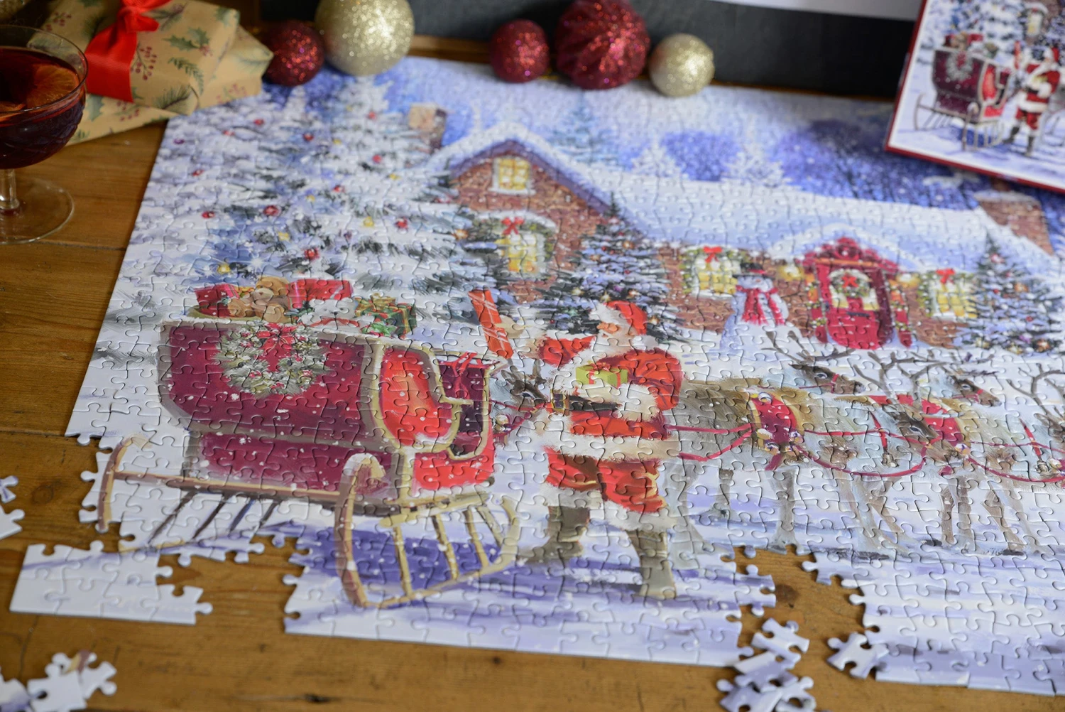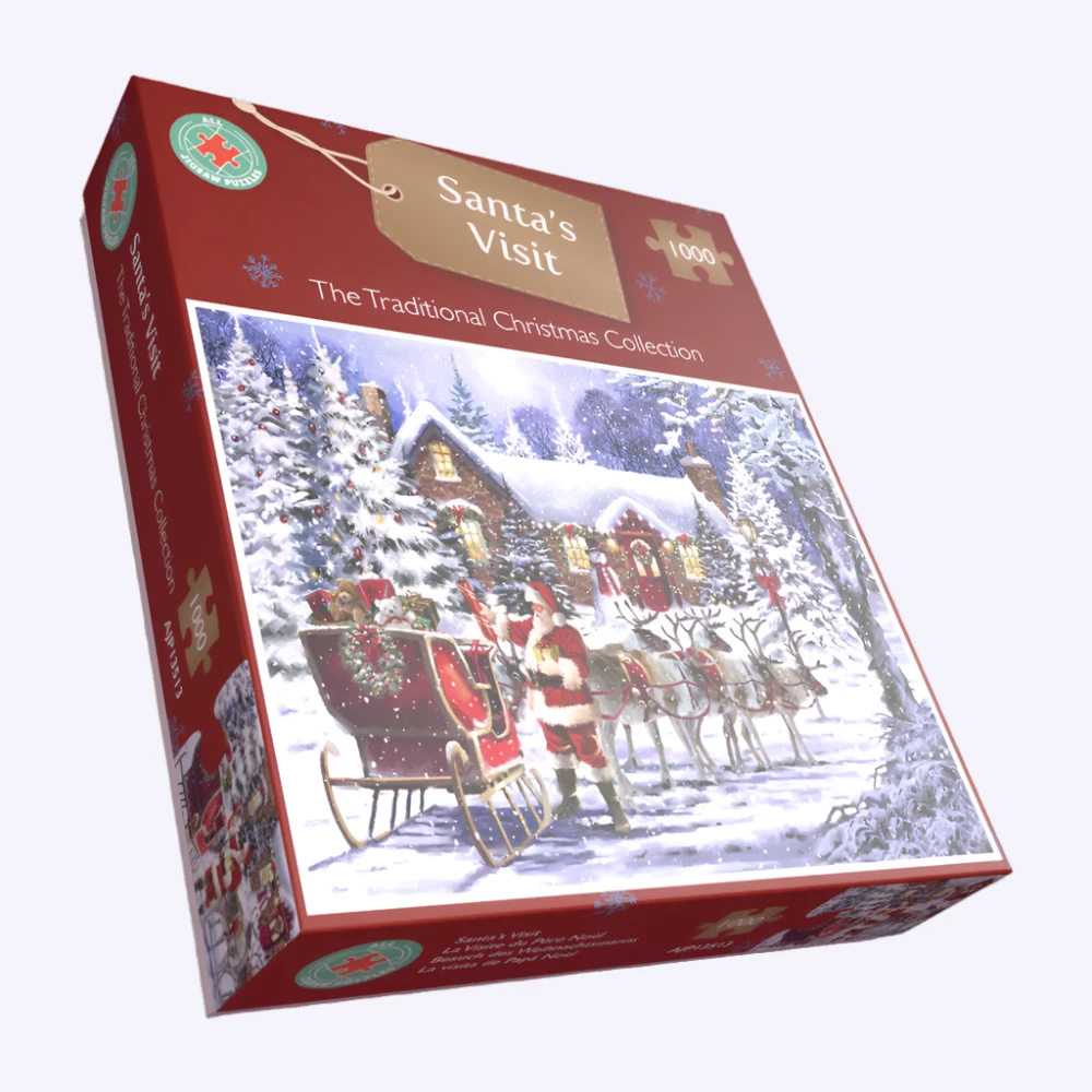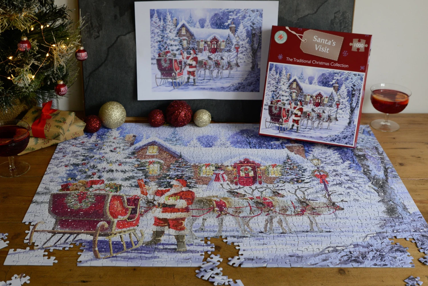 Immerse yourself in a winter wonderland with this stunning nostalgic scene ‘Santa’s Visit 1000 Piece Jigsaw Puzzle’