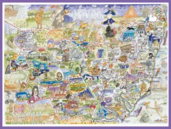 Discover the rich history of Suffolk with this excellent comical map from Tim Bulmer. This ever-popular county was home to famous artists John Constable and Thomas Gainsborough and Suffolk resident Violet Jessop was dubbed “the Queen of Sinking Ships” after surviving voyages on the Titanic, Britannic and Olympic. You’re sure to piece together some new facts while assembling this fun Jigsaw puzzle of this English county.