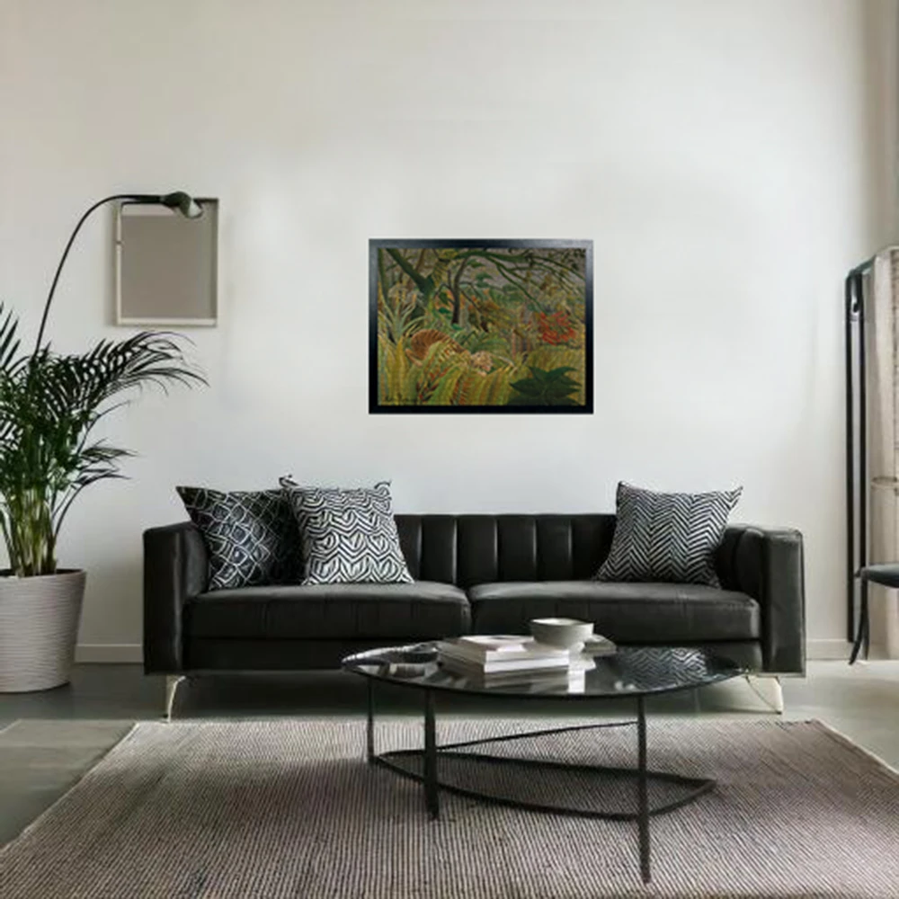 Painted by Henri Rousseau in 1891, this painting features a tiger crouching in jungle foliage and is one of the first of close to 20 jungle themed paintings that Rousseau painted. It is thought that these jungles are imaginary, as Rousseau never left France, despite his own claims that he had.