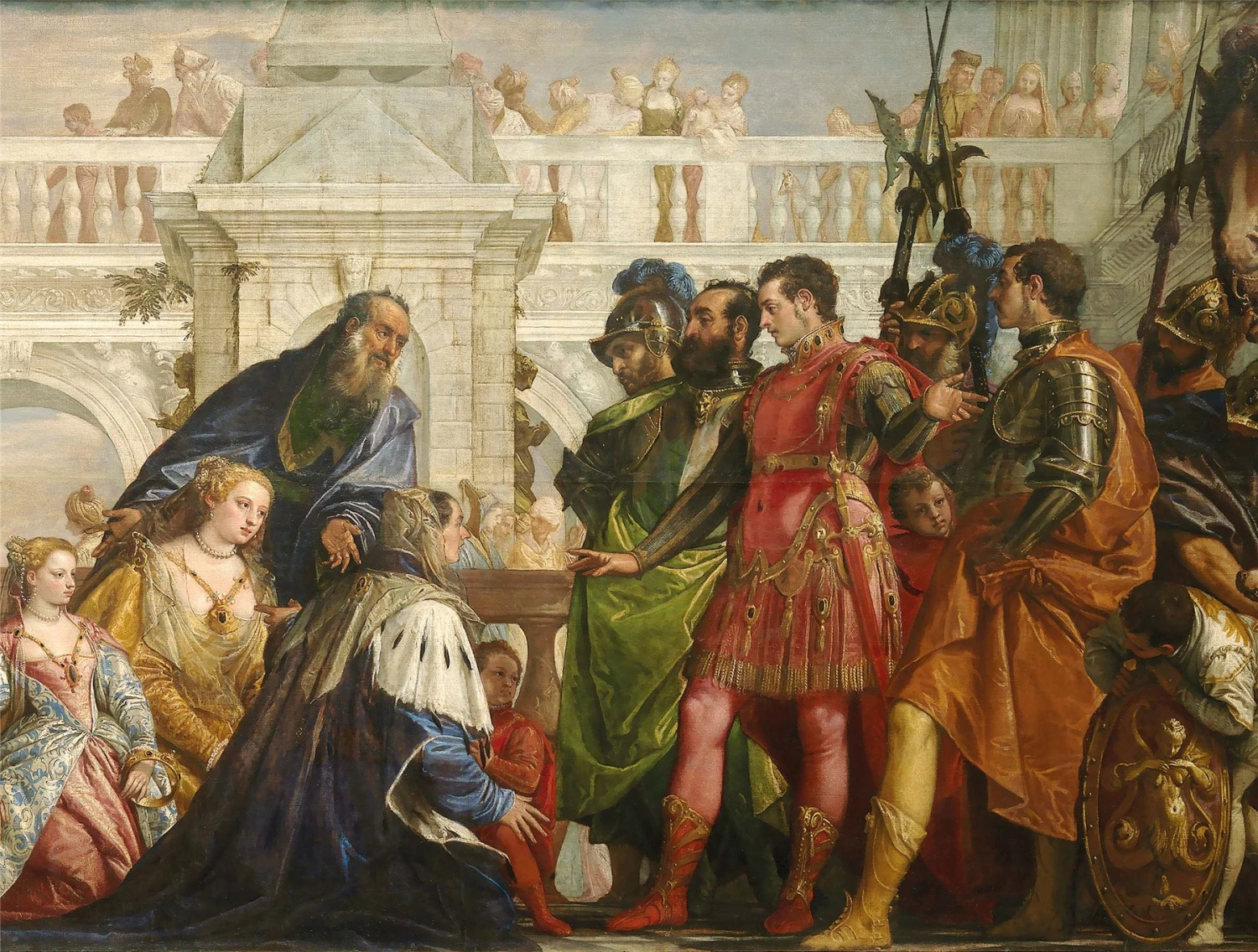 In this painting by Paolo Veronese in 1565, we see Alexander the Great visiting the distraught family of King Darius III of Persia, who he defeated in battle. It is believed that Veronese was commissioned to paint this by the Venetian Pisani family, who owned the painting until it was purchased by the National Gallery in 1857.‚Â