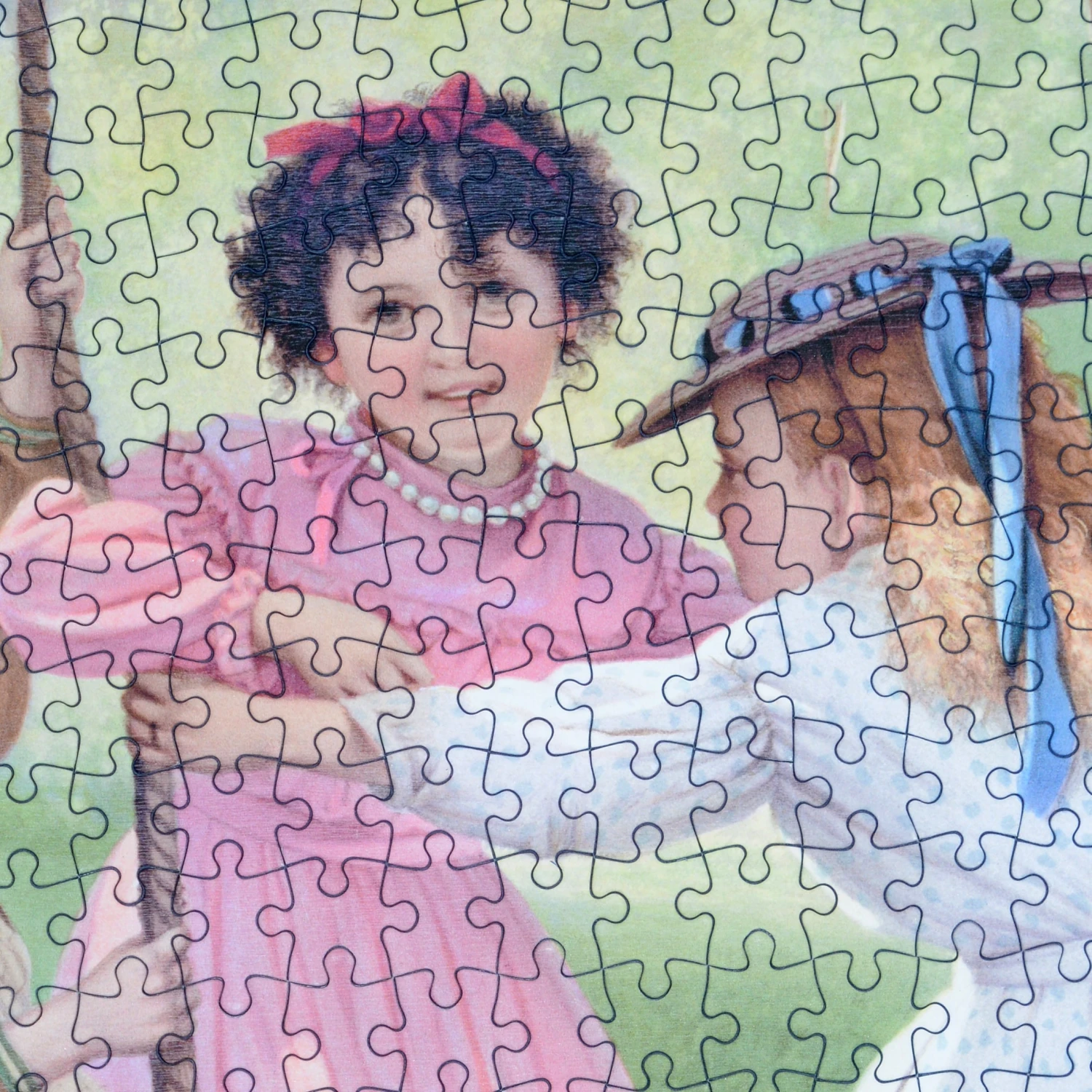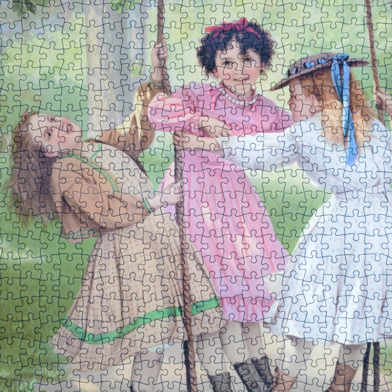 Featuring fine art and a traditional rope swing, this puzzle captures the playful spirit of three girls enjoying a carefree day in the woods. Take from 1800’s this traditional fine art scene makes us feel what it is to you be young and enjoy the simpler things in life. Dressed in their finest dresses and robust boots these children are having great fun! A delightful scene to piece together full of friendship and joy.