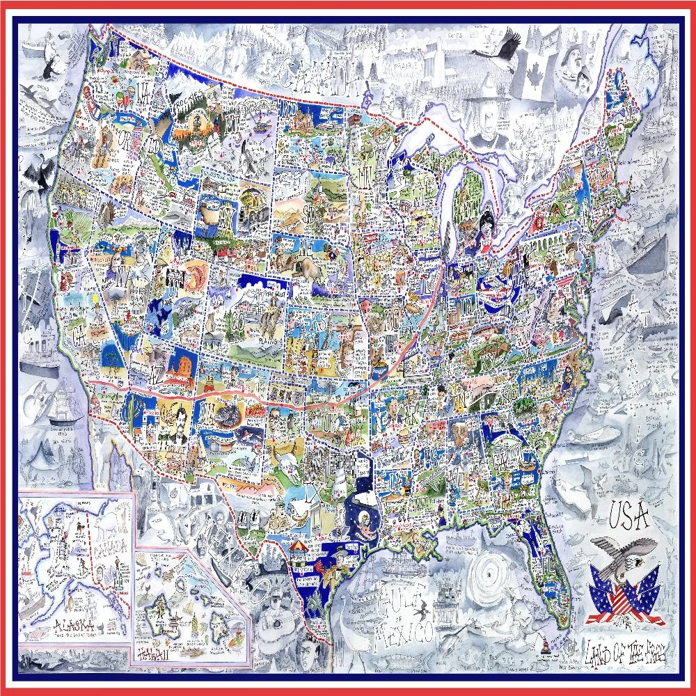 A stunning, whimsical and intricately detailed map jigsaw puzzle of the USA by the talented Tim Bulmer.