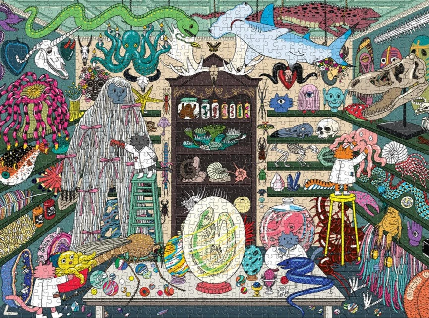 The World of Curiosities 1000-Piece Puzzle by Hye Jin Chung takes you inside a mysterious curiosity shop filled with quirky, eerie, and magical treasures.