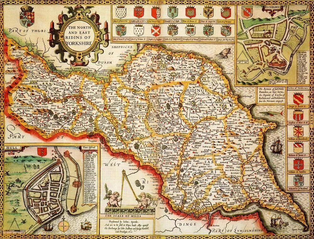 This is a superb jigsaw puzzle featuring the county of Yorkshire North & East Riding in approximately 1610.
